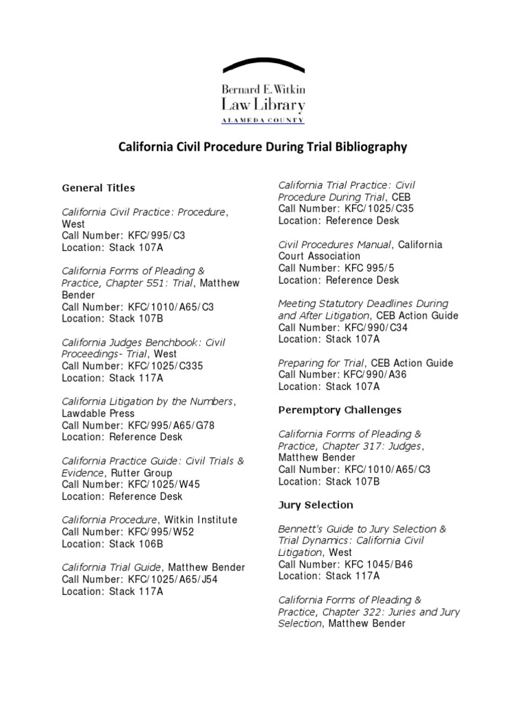 Ca Civil Procedure During Trial Biblio Lawsuit Legal