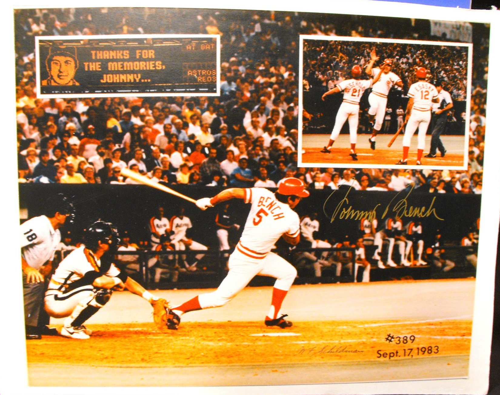 1983 Johnny Bench Home Run 389 Signed Matted And Framed Baseball Display Coa