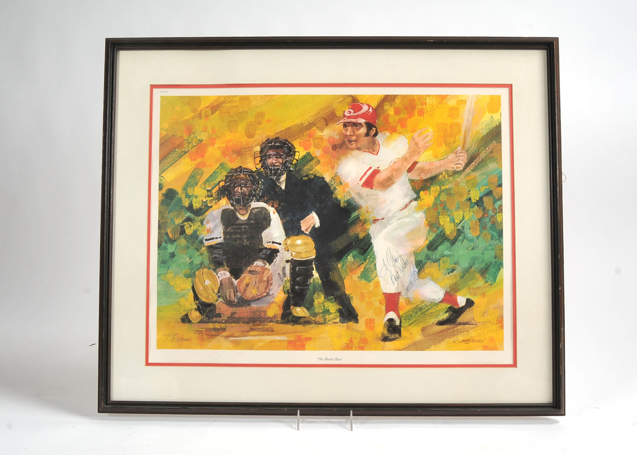 1972 Johnny Bench Signed The Home Run Clint Orleman Matted Framed Reds Print