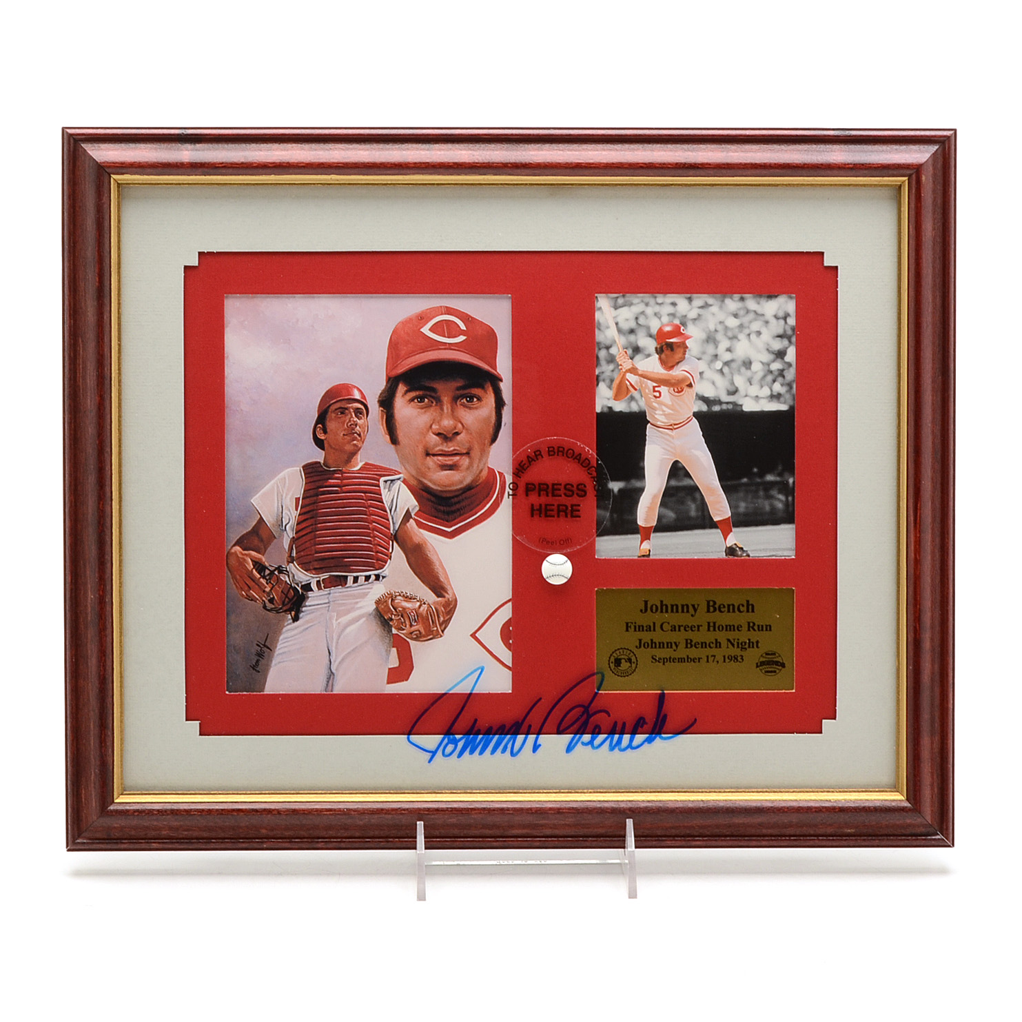Johnny Bench Signed Last Home Run Display With Broadcast